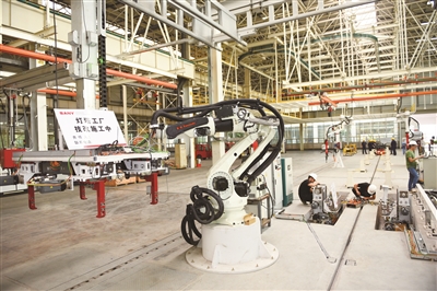 三一专汽灯塔工厂项目按整体规划两期实施的方式推进,总投资约8亿元,规划年产底盘5万台、搅拌车3.3万台、自卸车1.2万台。目前,一期建设稳步推进,计划8月份投产。图为7月15日,正在进行改造施工中的三一专汽灯塔工厂自动化生产线。