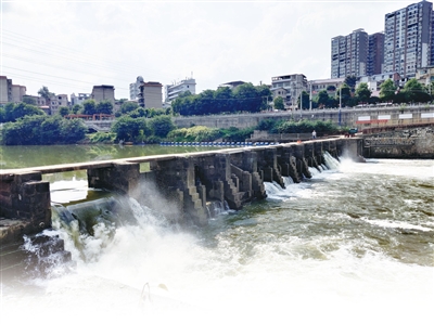 7月14日晚上,记者来到拦河坝邵水东路一侧,几名小孩正快速从坝上通过,水流湍急,两边没有任何防护设施,看上去让人捏了一把冷汗。
