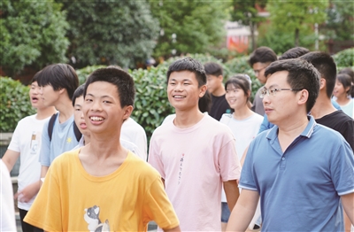今年我市共有99728名九年级学生、109229名八年级学生参加中考。全市共设九年级考点88个,考室2500个(不含备用考室,下同),八年级考点144个,考室2734个。其中,市区共设九年级考点6个,考室241个,考生9603名,八年级考点6个,考室266个,考生10543名。图为7月18日下午,考生们结束当天的考试,走出市湘郡铭志学校考点。